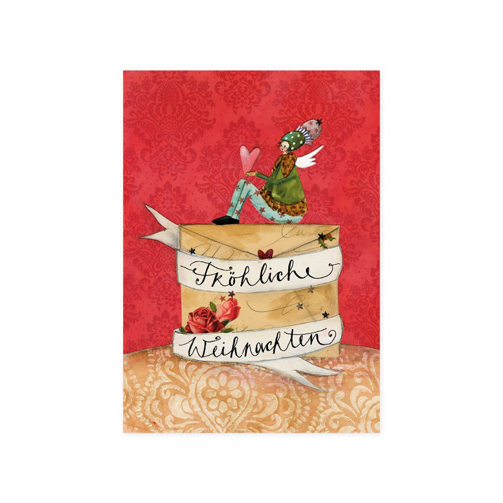 Weihnachts-Postkarte mit Glitzer Brief Banderole. Liebevoll illustriert von Silke Leffler. Hergestellt in Deutschland.