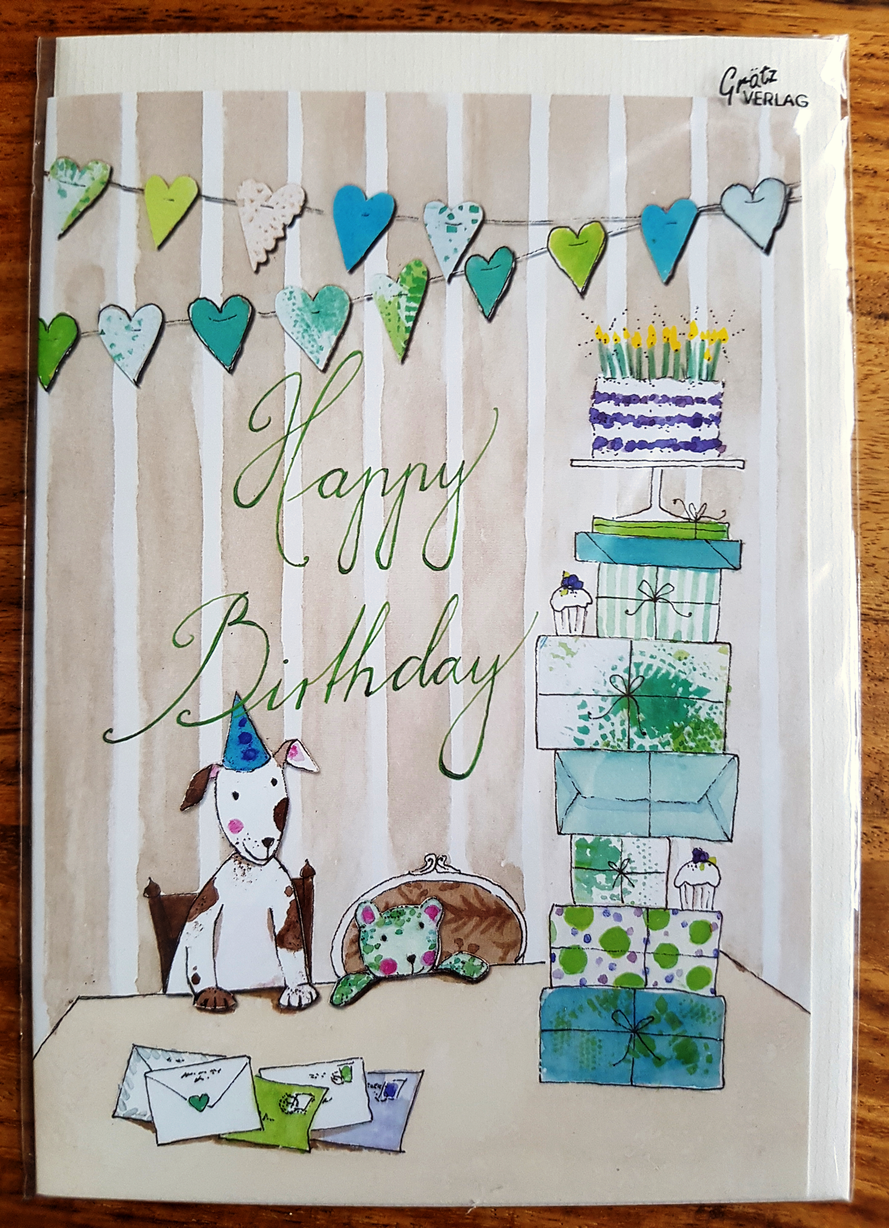 Die Freude beim Schenken lässt sich wunderbar mit dem hübschen Geschenkkärtchen unterstreichen. Die kleine Doppelkarte zeigt auf der Vorderseite eine Illustration von Silke Leffler. Das Kärtchen im Hochformat trägt die Aufschrift 'Happy Birthday' und kann auf der Innenseite von Ihnen mit einem handgeschriebenen Glückwunsch vervollständigt werden.