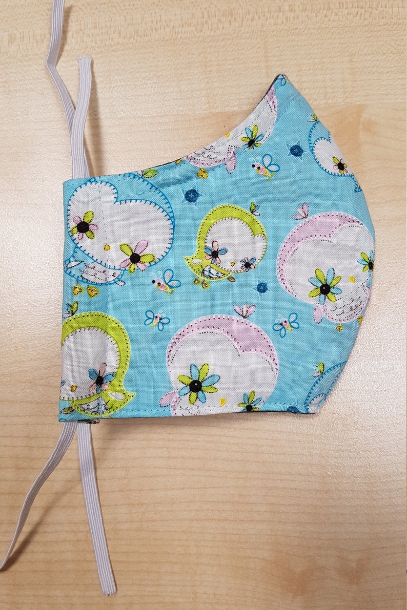 Behelfsmaske Eulen türkis, Alltagsmaske, Community Mask, Mund-Nase-Bedeckung