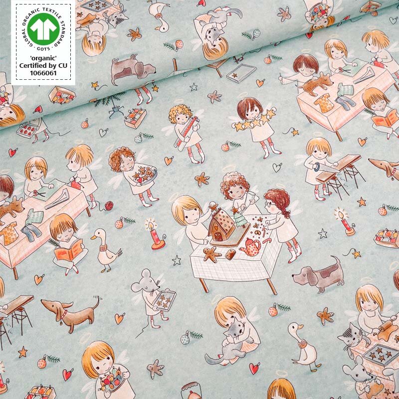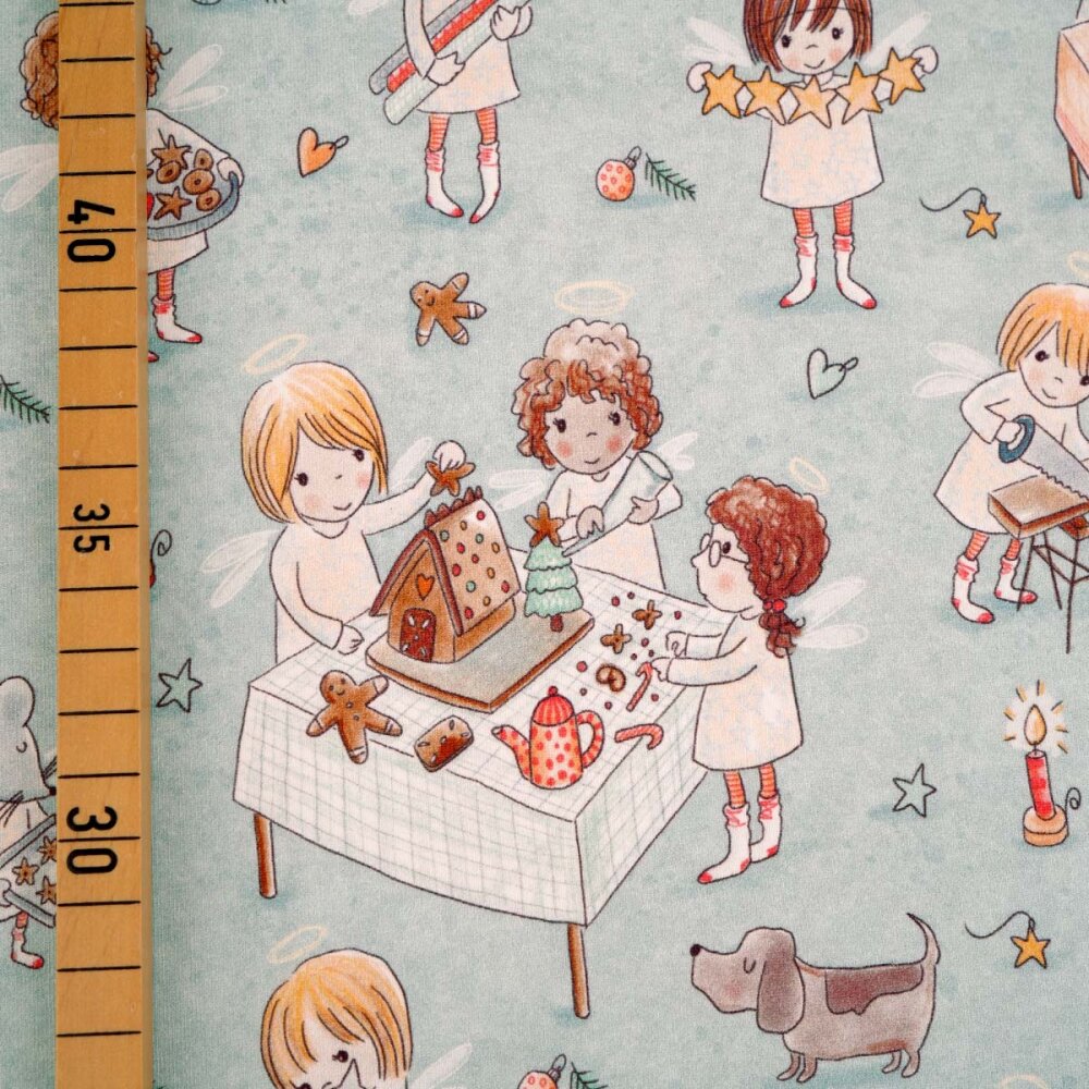 BIO-Jersey SUSAlabims Weihnachtswerkstatt grün, von Stoffonkel.