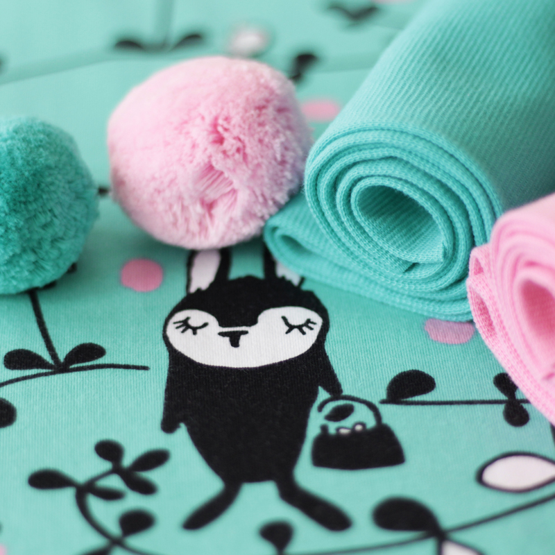 Mobile Preview: BIO Jersey Linnea türkis, Hasen